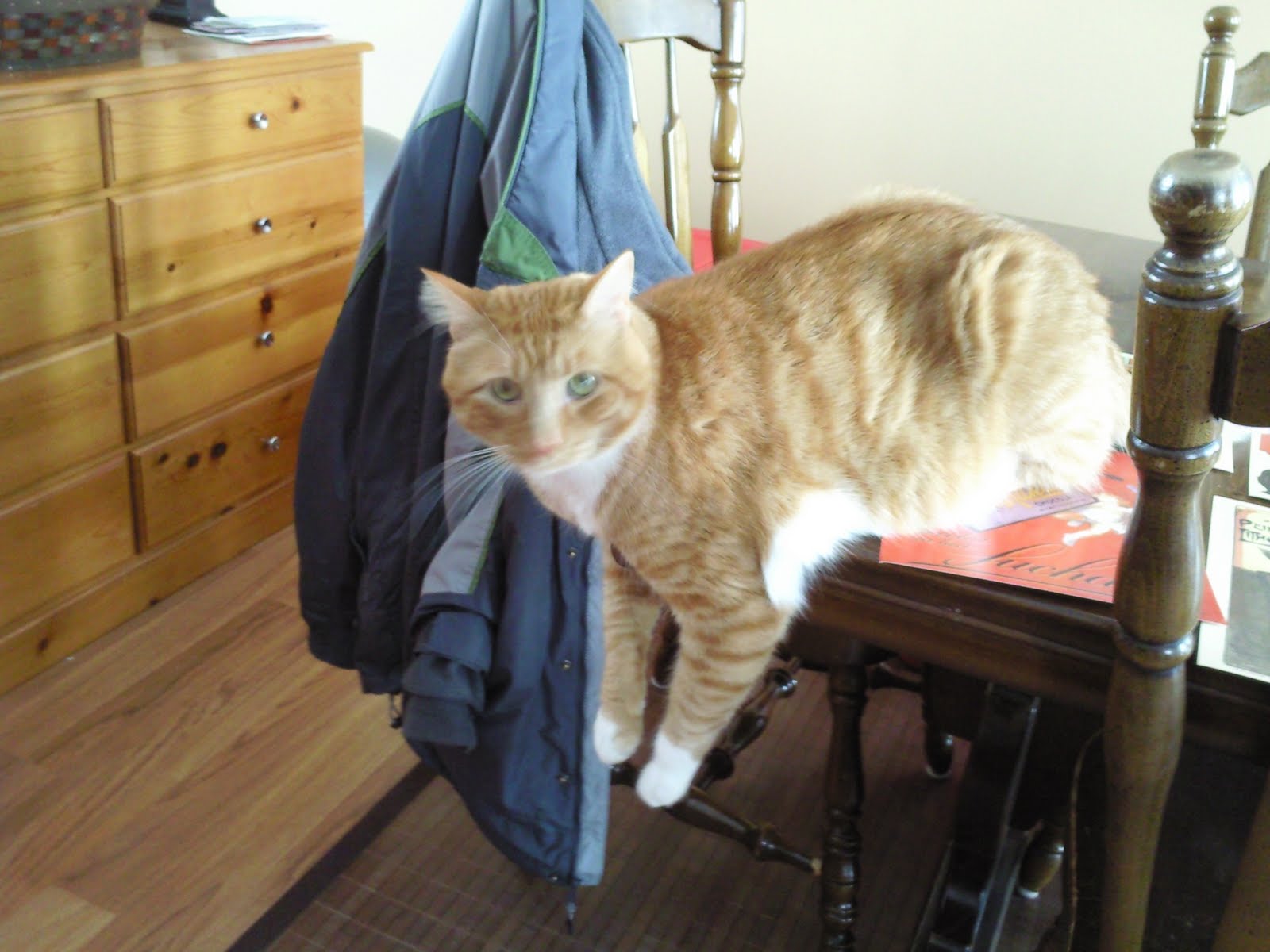Here is a "before picture of my dresser... Notice the large cat acting silly in the front of the picture... That's my kitty. If he knew I was posting this picture, I am sure he would make me take it down. He has much cuter poses.